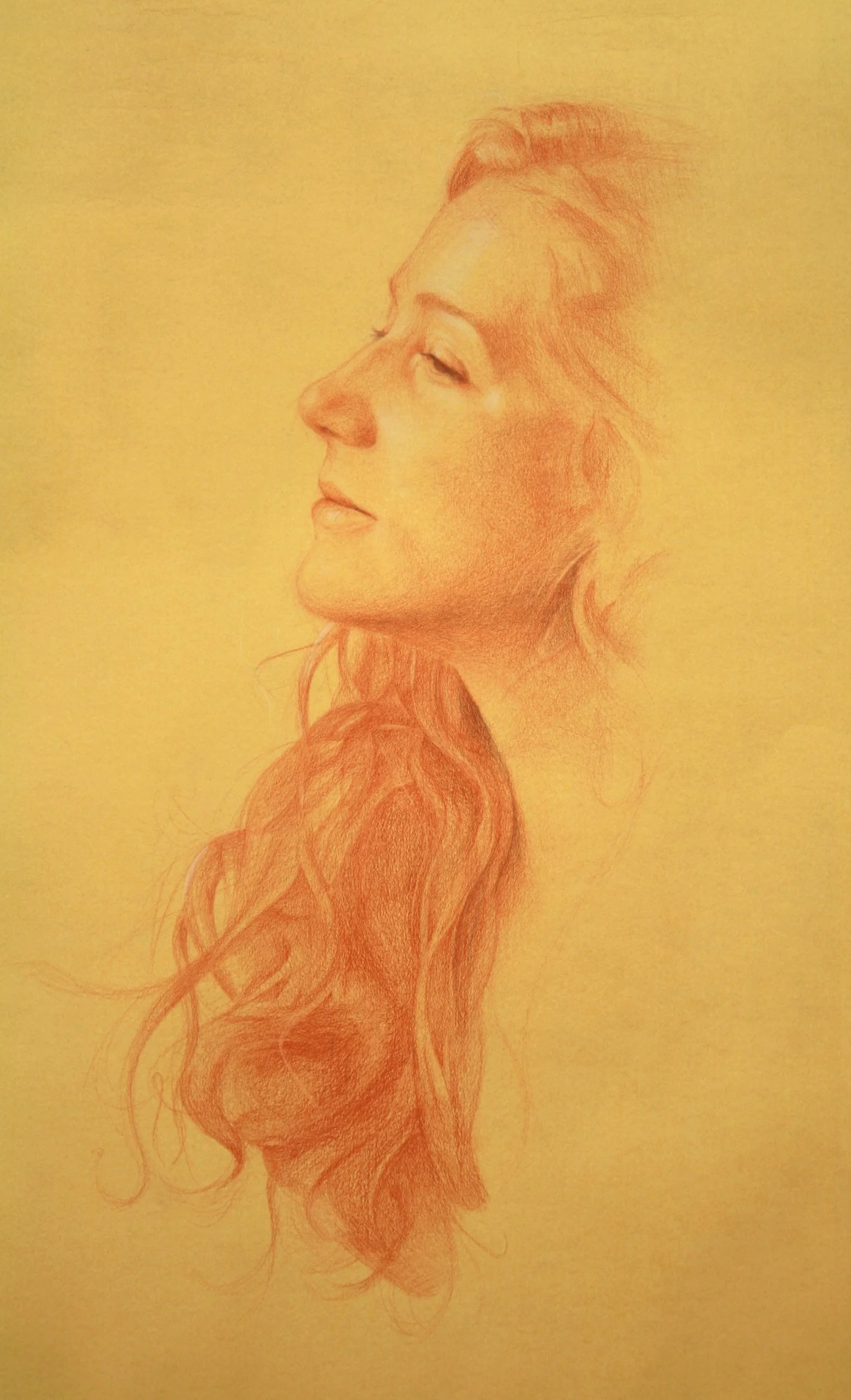 Marina, charcoal and white chalk on toned paper, 18" x 17"